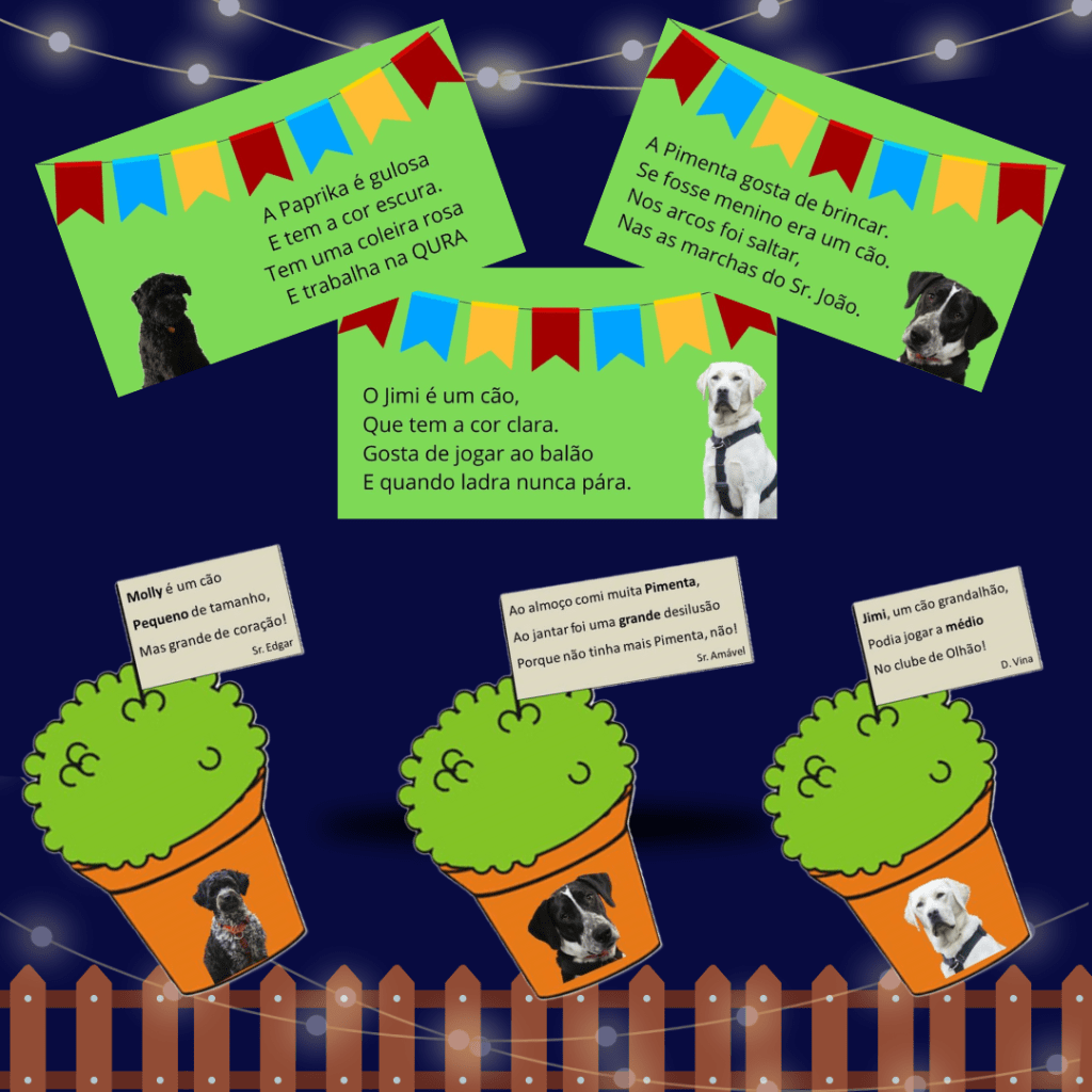 Nas nossas atividades assistidas por cães trabalhamos temáticas relacionadas com a época do ano, eventos ou datas importantes, lançando desafios e apelando à participação, criatividade e boa disposição do grupo. Os cães são envolvidos direta ou indiretamente na atividade, mas sempre relacionando com a temática da sessão e o resultado é sempre diferente de grupo para grupo. Deixamos aqui um cheirinho de uma atividade, dois exemplos separados por 7 anos, as primeiras quadras feitas sobre os nossos cães em baixo e as mais recentes em cima. Resultados completamente diferentes, mas todos igualmente importantes e acarinhados!