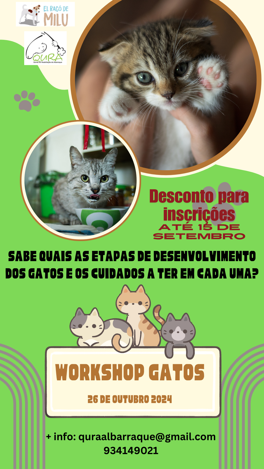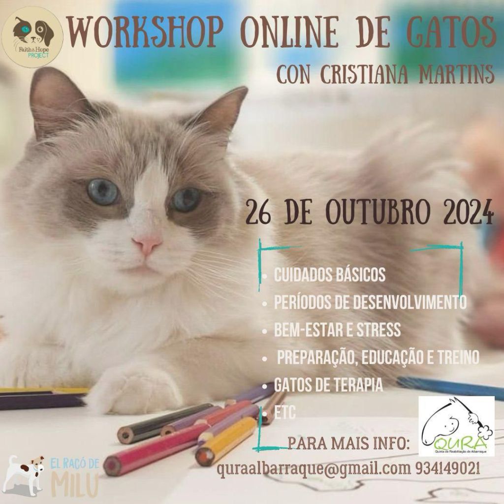Já sabe quais os temas que iremos abordar no workshop sobre gatos? Workshop exclusivamente online – 26 de Outubro de 2024 das 14h30 às 18h30
