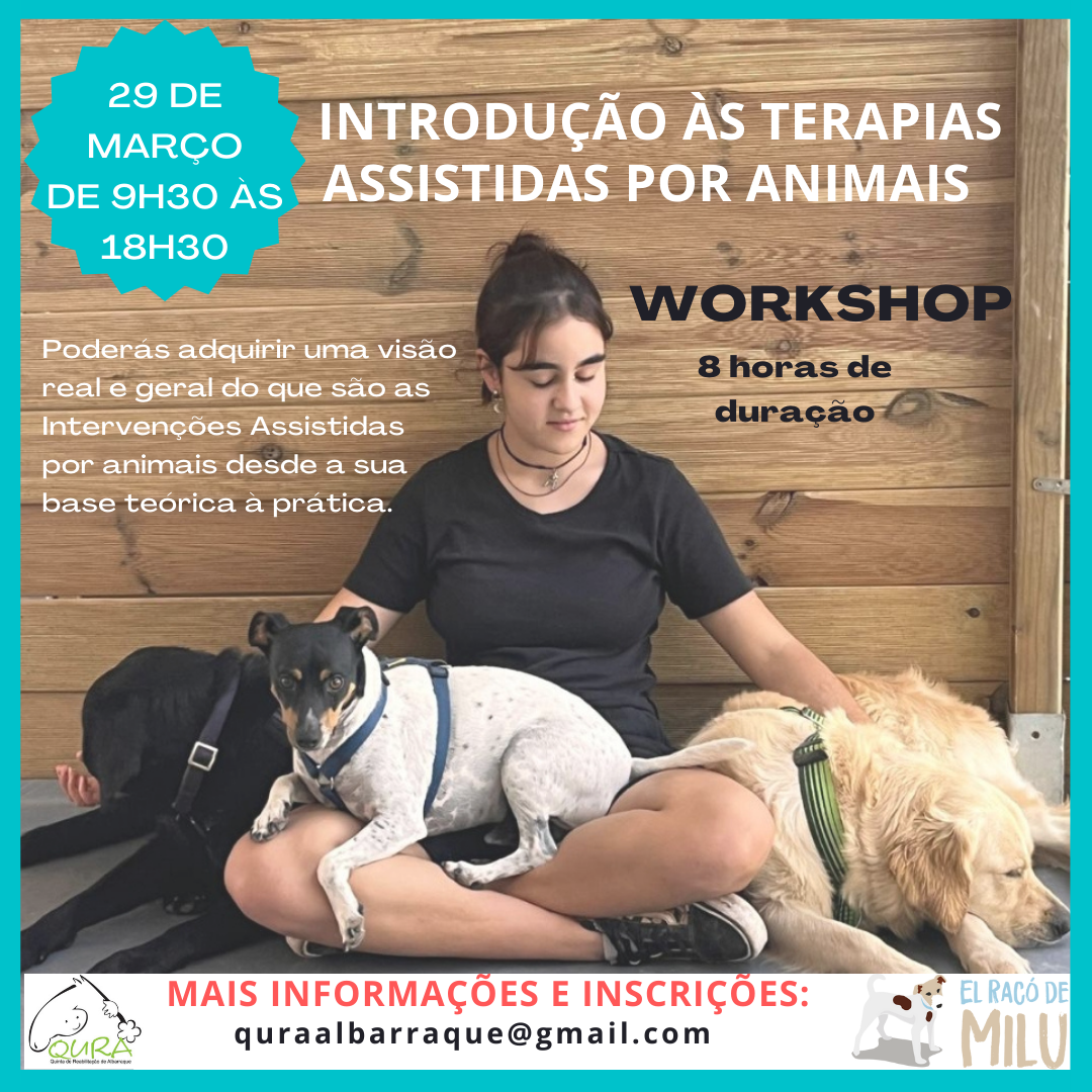 Workshop intensivo de 8 horas onde poderá adquirir uma visão real e geral do que são as Intervenções Assistidas por Animais desde a sua base teórica até à sua parte mais prática. Este workshop destina-se a todos os profissionais de saúde ou educação (psicólogos, educadores sociais, professores, terapeutas ocupacionais, fisioterapeutas, terapeutas da fala, veterinários, etc.) e a todas as pessoas que tenham um interesse específico na utilização dos animais como recurso terapêutico.